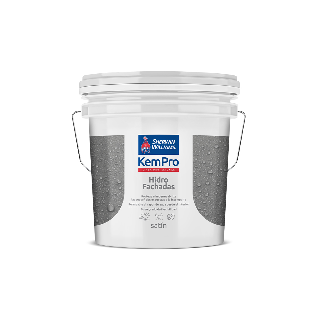 Hidro Fachadas KEM PRO es un esmalte al agua que contiene aditivos de última generación, diseñado para otorgar impermeabilización selectiva a los muros.